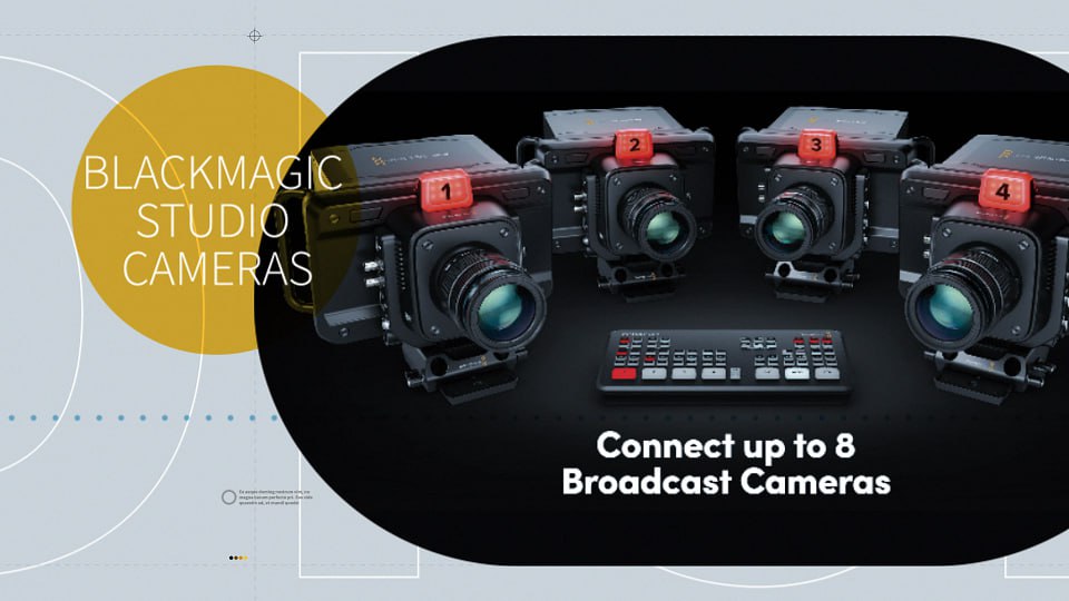 Capture Every Angle: Up to 3 Blackmagic Studio Cameras with tripod setups.